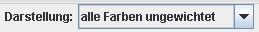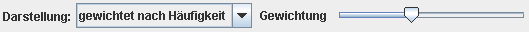 Die Transparenz der Farbwerte in der Visualisierung ist umgekehrt proportional zu ihrer Häufigkeit gewichtet. Häufige Farbwerte werden somit opak dargestellt, seltene transparent. Die Stärke der Gewichtung lässt sich mit dem Regler "Gewichtung" einstellen. |